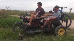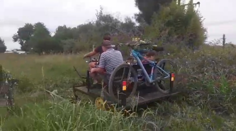 Se llama Cristian Lantelme el primer viajero que se animó a usar las vías ferroviarias en una moto adaptada para andar por la vía, porque la ruta 23 de tierra, es imposible usarla.
