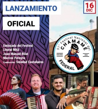 Será este martes 16 de diciembre desde las 11.30 en La Vieja Usina (calle Matorras 861 de la capital entrerriana). Habrá danza y música en vivo con Litoral Mitá, Juan Manuel Bilat, Marcos Pereyra y Embajada del Festival. La entrada es libre y gratuita, abierta a medios y Leer mas...