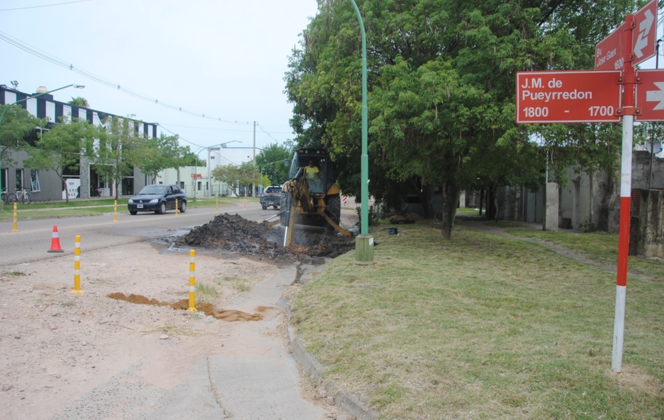 Se lleva a cabo el enripiado en distintos sectores de la Ciudad, nuevo alumbrado y sendero peatonal en Sanguinetti y bacheo en diferentes calles