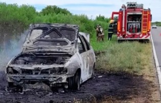 Un auto Volkswagen Polo, se incendió por completo en la Ruta 20 en la tarde de ayer.