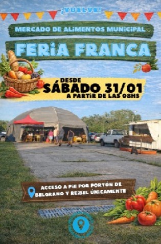 Luego del receso, este sábado 31 de enero retoma sus actividades el mercado de alimentos municipal, más conocido como “Feria Francaâ€, a partir de las 8:00 horas en el Predio Multieventos, con la participación de productores locales.