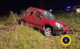 En ese lugar, y por causas que se tratan de establecer, un automóvil marca Peugeot, modelo Partner, el cual se desplazaba en sentido Oeste a Este, hacia la ruta 14, perdió el control, despistó y volcó.