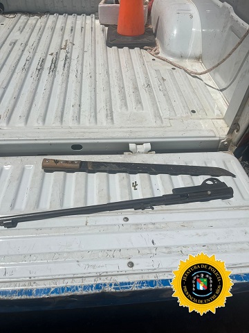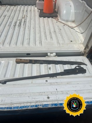 Tras un eficaz despliegue, el personal policial logr贸 interceptar a dos adolescentes, de 17 y 14 a帽os, quienes transportaban un arma de fuego larga calibre .22, la cual se encontraba acompa帽ada por tres vainas servidas, adem谩s de un arma blanca tipo machete. Ante la peligrosidad del hallazgo, se procedi贸 al resguardo preventivo de los involucrados y al aseguramiento del armamento.