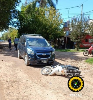 El hecho involucr贸 a un motoveh铆culo marca Motomel Blitz, en el que se desplazaban una mujer de 38 a帽os junto a otra de 29 a帽os de edad, por la primera arteria antes mencionada en sentido Sur a Norte, y un autom贸vil marca Chevrolet Spin, conducido por un hombre de 42 a帽os, que lo hac铆a por la restante en sentido Oeste a Este.