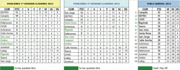 Posiciones: San Jorge y Costa del U. 7; Cave 6; Liverpool, Defensores, Achirense y Sauce 5; Liebig y San José 4; Campito, Santa Rosa, Calle Ancha y Ñapinda 2; Basso 0. Leer mas...