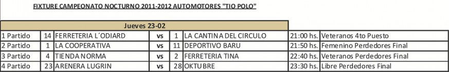 Competencia: 20.30 hs a 21.30 hs-Polideportivo