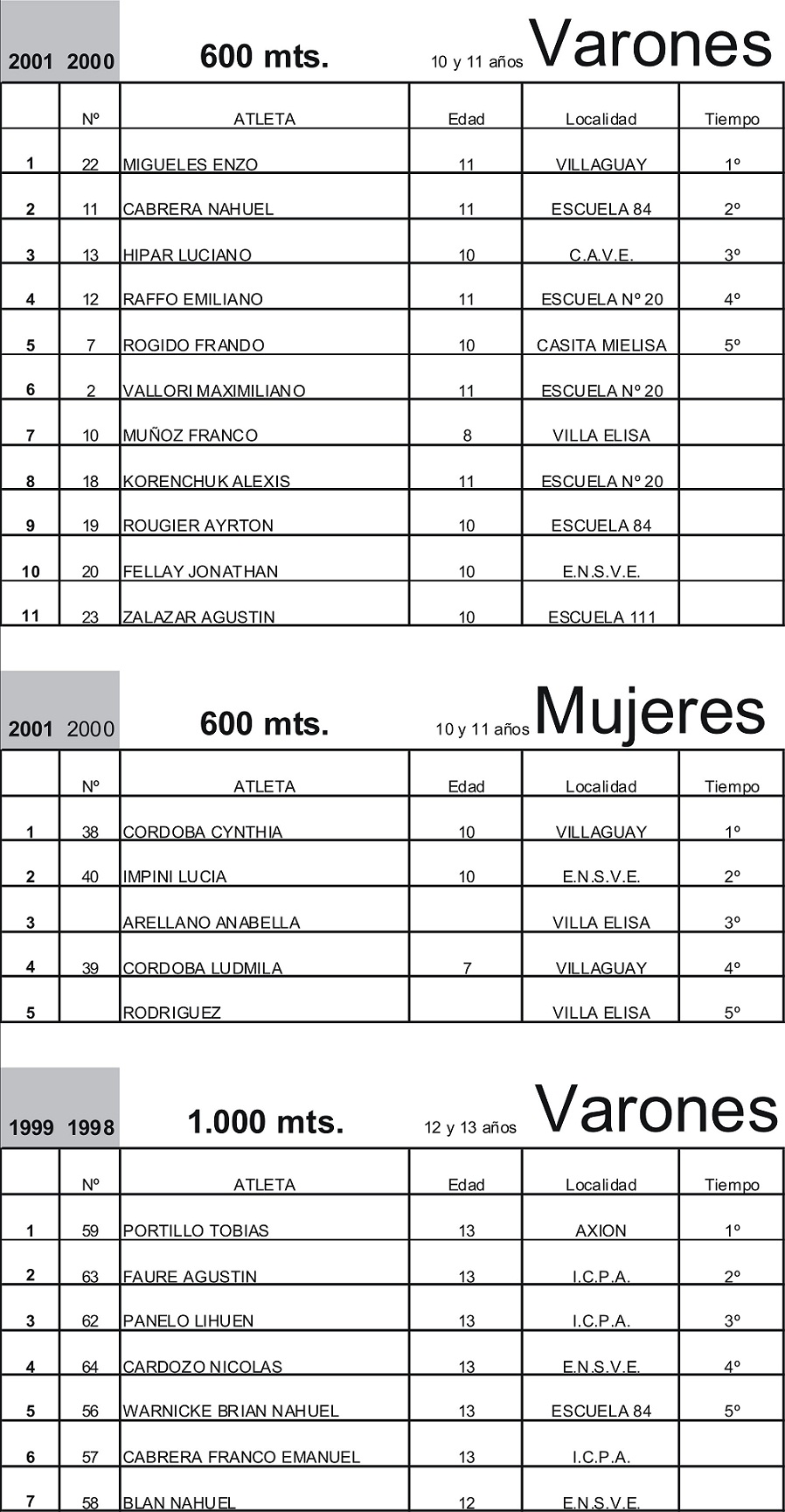Se jugo anoche una nueva fecha del nocturno del Cave, con los siguientes resultados: