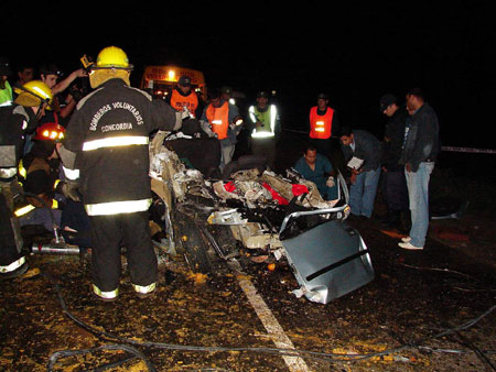 Un hombre perdió la vida en horas de la noche de este miércoles en un violento choque ocurrido en la ruta Provincial 39 entre las localidades de Basavilbaso y Estación Rocamora, al oeste del departamento Uruguay. Ocurrió minutos antes de las 21.00 frente a la plante industrial de Manfico. Se trató de Gregorio Spiazzi de 75años, empresario de la consignataria Spiazzi S.R.L, quien perdió la vida producto de las graves heridas que sufrió al accidentarse en su camioneta, que chocó contra el acoplado de un camión, cargado con leña. Spiazzi viajaba desde Rosario del Tala, rumbo a Urdinarrain en una Ford, dominio FRV 391, que era conducida por Matías Eckerdt (25), empleado de la firma, quien a la altura del kilómetro 191,5 de la Ruta 39 precisamente frente a las instalaciones de la empresa Manfico, se encontró con un camión Mercedes Benz –patente RLQ 459– con un acoplado, domino RXI 814, cargado con leña, el que era remolcado por un camión, también cargado con leña, marca Mercedes Benz, guiado de este a oeste por Edgardo García (53), oriundo de Concepción del Uruguay, quien cruzó la calzada con el propósito de ingresar a la planta industrial, al que choca violentamente.... Leer mas...