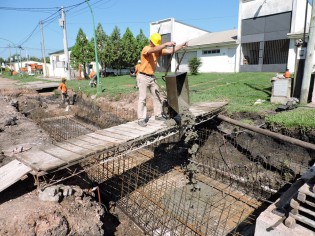 Un grupo de operarios continúan con el trabajo de cordón cuneta sobre calle Alvear. En ésta oportunidad construyen un badén en la intersección de calle Alvear y J. Moix.